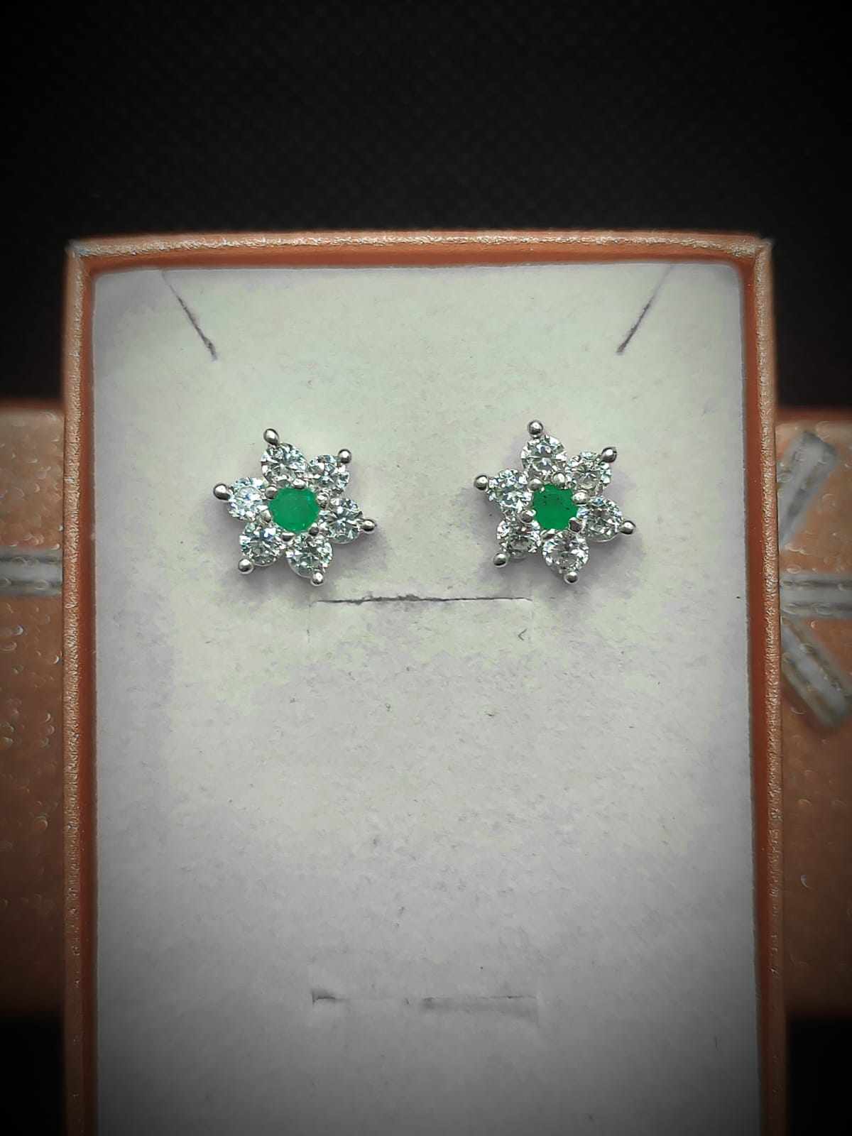 Estos elegantes aretes de plata presentan un diseño de estrellas de seis puntas que combina sofisticación y brillo. Cada estrella está adornada con circones blancos de corte brillante que enmarcan una esmeralda central, creando un contraste luminoso que realza la profundidad del verde. La plata de ley proporciona durabilidad y un acabado pulido que complementa perfectamente las piedras preciosas. Ideales para ocasiones especiales o para quienes aprecian joyería con carácter y elegancia atemporal.